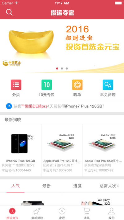 攒运夺宝app是一款顺应夺宝趋势而开发的手机app,如果你想成为那个最幸运的人,如果你想参与超值的一元购活动,那就快来试试攒运夺宝手机客户端吧,新推出的平台中奖机会更大,小伙伴们快来下载试试吧。