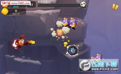 玩家直接拖动手指即可控制沃克的移动,沃克背着飞行器所以可以在天空中自由移动,而游戏2D横版的设计风格对于移动上会有一定的制约,不过这样的设计还是非常经典的,而游戏开始之后沃克就会自动使用手中的武器对前方进行攻击,不管前面有没有敌人,而在画面的右下角有一个B键,通过点击这个按键沃克将会使用特殊攻击技能对敌人进行强有力的打击。值得一提的是在沃克只有两点生命值,所以如果受到了两次攻击游戏将会结束。