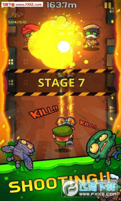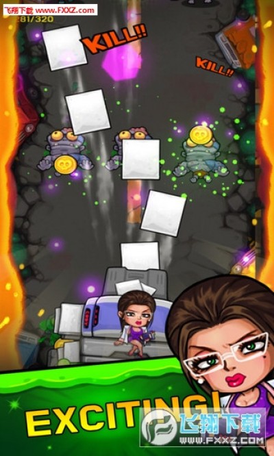 这里你将接到猎杀僵尸的悬赏任务,杀够一定数量的僵尸将获得奖励。随着关卡的推进,僵尸的血量将越来越厚,注意别被僵尸撞到,否则将会game over。收集赏金解锁更多英雄。因为每一个关卡当中都是一个新的体验,更多的说明了一点就是,要是想完全的成为猎杀僵尸的猎人难度还是很大的。