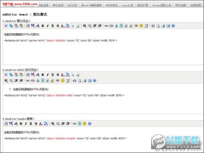 注:前面主参数也可以是xheditor-mfull、xheditor-mini或xheditor-simple,分别加载多行完全、迷你和简单工具栏。后面大括号用来定义更多的初始化参数,可以省略。