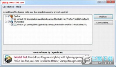 2、支持Firefox、Skype、Chrome、Thunderbird四种软件,并且只要点击“optimize”按钮就可以解决所有问题(需优化的文件所在的路径是自动探测的)@rjno1.com。