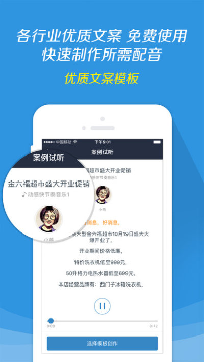 3:文案丰富:海量样音模板文案、优质背景音库,完美搭配。