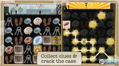 在游戏中你将作为一名有理想有抱负有担当的小侦探,你每天的工作很简单,就是接受来自五湖四海的各种委托。这些委托千奇百怪,有的是要你寻找失物,有的则是需要你寻找小偷等等。每一个案件你需要走访案发现场的目击者或者附近的人来获取情报,你每次走访的人数还不相同,他们会提示你消除 N 个元素来获取所需的情报。值得一提的是,这里的消除玩法比较自由,只要不重复划线,那么横着竖着斜着画都是允许的,务必做到所连数量最大化,这样才能快速得到所需要的资料。
