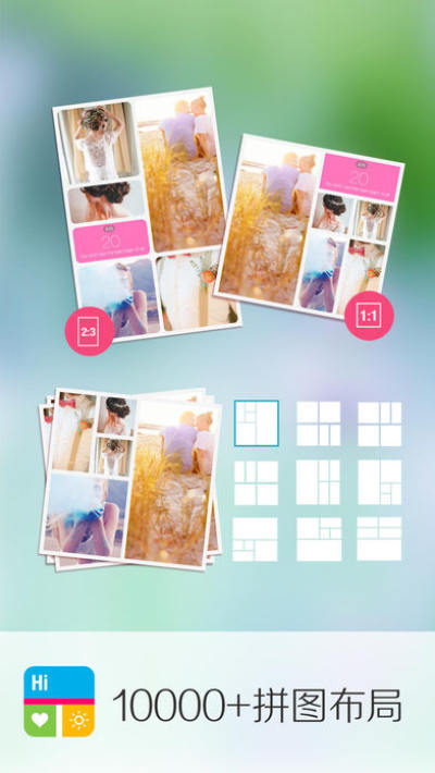 * 爱拼图可以帮你将多张照片拼贴成一张,并一键分享至新浪微博,QQ空间,微信好友,微信朋友圈,Instagram,Facebook,Twitter。