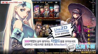 据Shift Up官方透露,游戏内拥有多达500名角色,每位登场角色都运用了Live 2D技术。在角色设计方面初期则约有100位角色草稿,后共绘制出107名角色,其余部分人物则交由日本知名插画家村田莲尔与士郎正宗等共同参与绘制,这也是本作备受期待的原因之一。