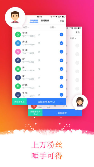免费的加粉功能,帮助您快速吸粉,壮大团队,扩大销量!
