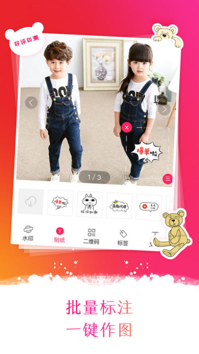 可以批量辅助作图100张,提供包括批量水印、免费在线水印模板、上传自定义logo、个性化水印样式和内容、添加文字、贴纸、标签、等一站式图片处理功能!所有功能强大却不失简洁,绝对让您用的顺手,用的开心!