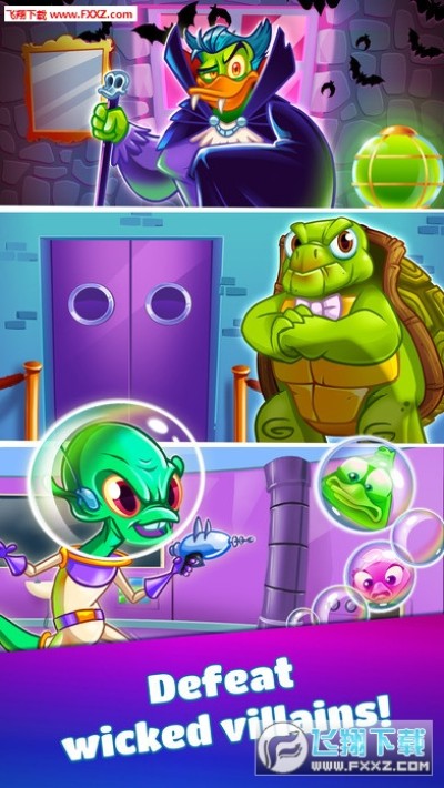 玩家的任务就是带领达克、特拉沃尔塔、达基、帕顿和夸克5只鸭子在一个鸭子统治的世界里跳舞,使用多彩的组合和绝妙的道具来打败邪恶的坏蛋,使用道具消除,我们可以注意的是很多的小鸭子出现,在最后我们消除不掉的时候可以选择使用技能或者是道具来帮助消除,这个消除的效果还是不错的。