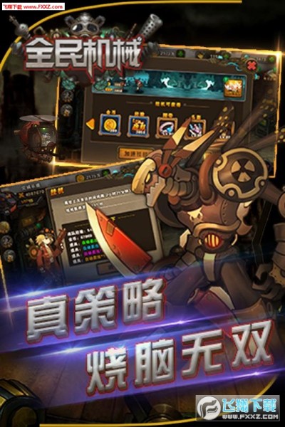 《全民机械》是一款蒸汽朋克风格的2D卡牌SLG游戏。玩家将扮演一个失去父亲的小女孩,踏上复仇之路,探索这个神秘而荒诞的蒸汽魔法世界。旅途中会遇到各色有趣的勇士们,组建队伍,用力量证明自己!超强策略,属性互克。跨越战力限制,成王败寇全看智商!技能取舍,缘分培养。九宫格回合制,千变阵容就靠搭配!放置挂机,轻松成长。对重度say no,懒人必备一念成神! 军团PK,跨服决战。强者对话,顷刻引爆你的指尖!