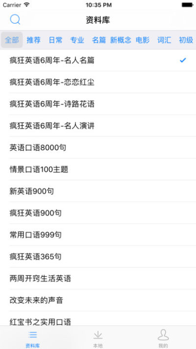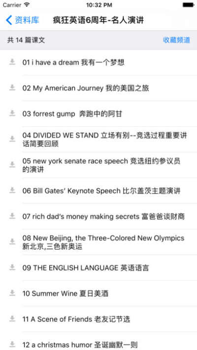 5.除了自带的三大部分的内容外, 还可在线下载其它资料, 而且, 这些资料全部都是语音+同步课文
