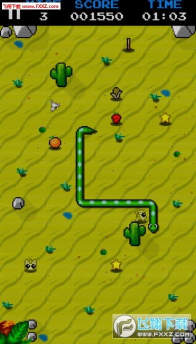 捕鼠贪吃蛇手游iOS版游戏中玩家的任务就是控制那条一开始又短又小的绿色小蛇,认准画面中的小老鼠然后游过去吃掉它们,这样蛇就能不断长大变长。与此同时还要注意避开石块仙人掌炸弹之类的障碍物或者避免撞墙,还要看清楚蛇本身的位置,不要让它自己吃自己导致出现游戏失败的情况。