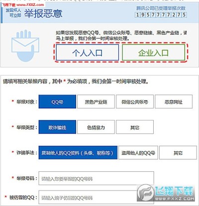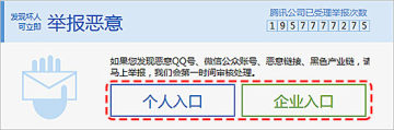 您可以直接进入网站http://110.qq.com/点击“企业入口”或是“个人入口”,再根据选择的类型提交相应的资料提交即可。
