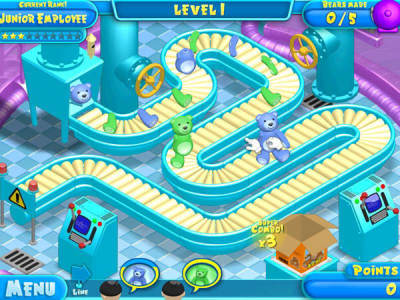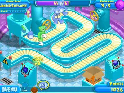 小熊工厂是一款在有趣而且相对来说对小孩子比较喜欢的游戏。你有幻想过给自己开一家玩具厂公司或自己做一个玩具厂的工人吗。如果两者都没有的话那么我们现在就来尝试下做这一行是什么感觉,游戏总共有十几个关卡。本人只玩过3关就不行了,后面的靠你们咯!