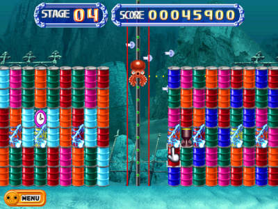 有趣的消除游戏。你要帮助可爱的章鱼来解救被有毒物质污染的海洋,将3个颜色相同的油桶排列连接在一起就可以进行消除了,虽然要消除污染面临重重困难,不过为了美丽的大海相信你一定会担负起这个使命的