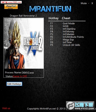 F1 无敌模式F2 无限KiF3 无限体力F4 无限金钱F5 无限奖章F6 无限属性点F7 海量经验F8 无限时间F9 解锁所有技能(需要打开技能列表解锁技能)
