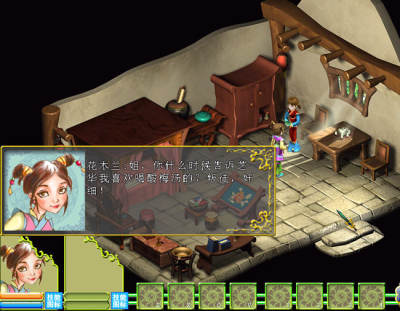 花木兰的游戏画面脱离了2d人物造型显得更田中精美细腻,画风清新可爱,更具幽默风格,人见人爱的一款好游戏。整体来说,花木兰在地图和人物制作上做的很细致。特别是地图,我初看的时候就觉得很惊讶,让我觉得眼前一亮:画面细腻而精美。给我感触最深的是游戏的最后一个地图,整体感觉很类似《暗黑破坏神2》的皇宫地图,精致而且细腻。国产游戏的新楷模值得一玩。
