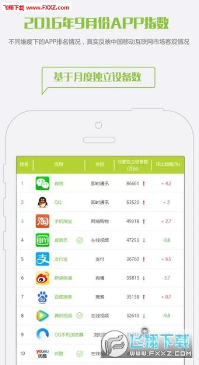 专注于网络媒体、电子商务、网络游戏、无线增值等新经济领域的艾瑞网也推出艾瑞APP指数客户端,艾瑞APP指数由国内首家新经济门户站点艾瑞网集团自主研发,在对移动用户行为进行监测建立数据库的基础上,艾瑞APP指数从月度独立设备数、日均独立设备数、阅读总有效使用时间三个维度分别对移动用户行为进行监测及分类,并通过一系列权威数据真实反映当下中国移动互联网市场的客观情况。