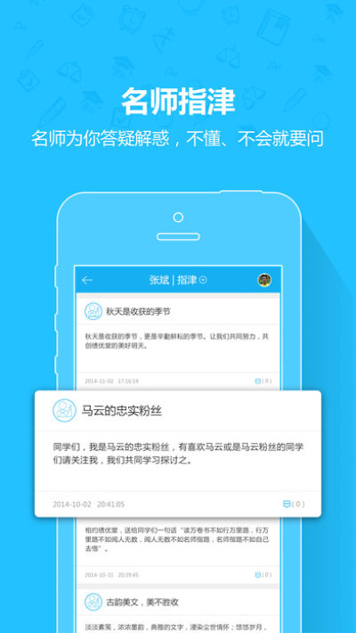 名师辅导,由北京绩优堂教育科技有限公司研发上线,是一款致力于服务全国百万名师和中学生的在线教辅工具。名师以实名认证的方式开设个人专属教学频道,为学生提供视频讲解、在线交流互动、课件下载等多种学习方式。