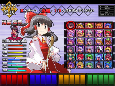 东方大运动会之博丽大乱斗以四人乱斗为主体游戏方式,类似于FC游戏《热血 格斗传说》,并曾经在例大祭5和C74发售过分别名为《东方大运动会 动作试验版》与《东方大运动会 动作试验版 夏》的两款体验版。
