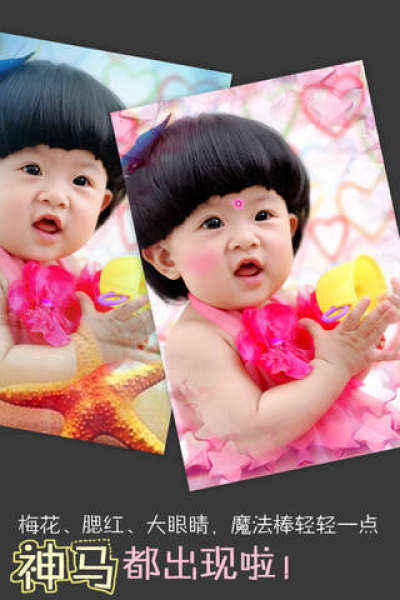 还记的小时候妈妈给咱贴的梅花吗?给宝宝也P一个。眼睛再大一点,脸蛋再粉一点,再调调肤色可能会更完美,*^__^*