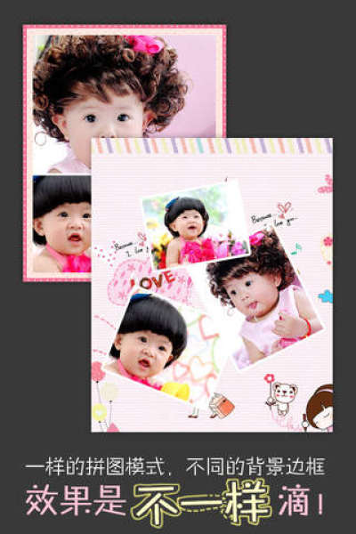 三大主流拼图模式,我们有更多可爱的背景和边框,加上你的创意,效果是不一样滴!