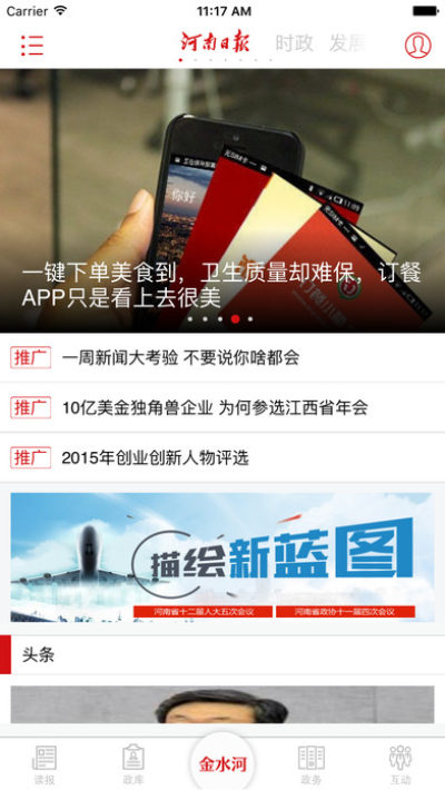 河南日报《金水河》致力于为全省各级党政机关、广大党员干部、公职人员、企事业单位管理者、高级知识分子等目标用户,提供信息传播平台、政策发布平台、政务服务平台、学习交流平台、移动办公平台。