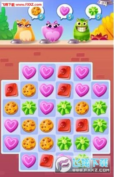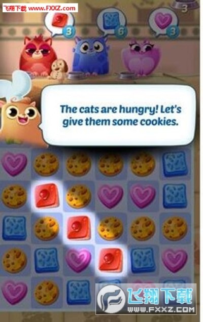 饼干猫咪手游安卓版游戏中不管是竖向、横向还是斜向均可以连线,连线个数三个以上即可消除,这个简单的机制应该不用啰嗦太多了。当然了,这些喵星人此行可不是消除饼干那么简单,我们要根据它们的需求,把对应颜色的饼干消除并喂到它们嘴里,吃完之后它们就会心满意足地离开,说到底这就是本作最核心的任务。