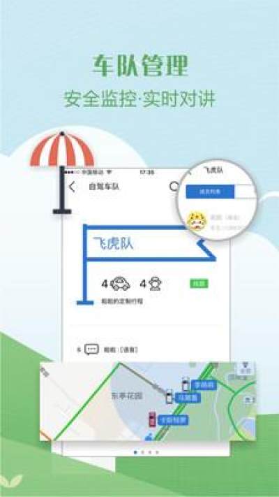 【车队管理】系统分析车主位置,队长、车主和成员合理区分,管理更清晰,不掉队、不偏移,让旅行更加方便,简单~
