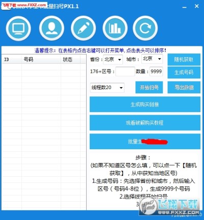 1、生成号码:先选择省份和城市,然后输入区号(号码4-8位),生成9999个号码