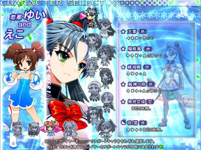 游戏共有十位美少女可操作,外加了五名(包括还有一个隐藏缩小版BOSS,只可随机选出)loli援助角色,其作用相当于豪血寺一族-斗婚中的黑子,平时就跟在操作角色后面,做些援助攻击和恢复体力。操作上最大的特点,是设定了一个格挡键(类似街霸3的block系统),令游戏系统更丰富,游玩起来变数更多。