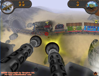 强盗列车下载是一款第一人称射击游戏。强盗列车中一群金币大盗占领了一辆列车,一个勇敢的警察驾驶战斗机展开了追击,在这场战斗中你能解决多少个盗贼呢?来一试身手吧~