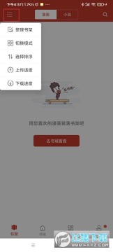 2、左上角是书架设置,可以对漫画和小说进行整理和排序;