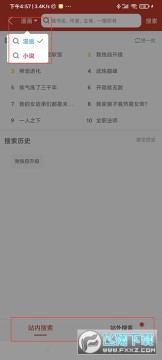 3、右上角是搜索,可以站内搜索、站外搜索,也可以分别搜索漫画和小说;