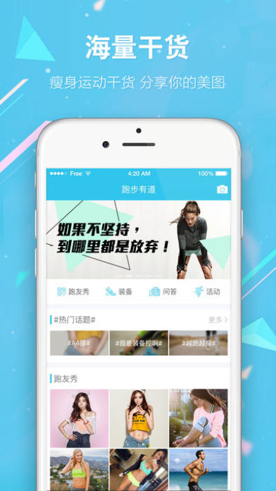 吃什么+穿什么,怎么跑+怎么练,参与讨论每日话题,与小伙伴们分享你的运动时刻,让大家来给你点赞!