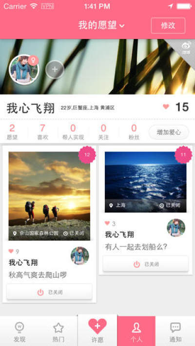 许愿树app是一个非常好玩的手机社交软件,你可以将自己的愿望在这里发布,让附近的人都看到,如果碰到好心人说不定他会帮助你实现哟,同时你也可以做一些力所能及的事情来帮助别人实现愿望,结交更多的朋友!