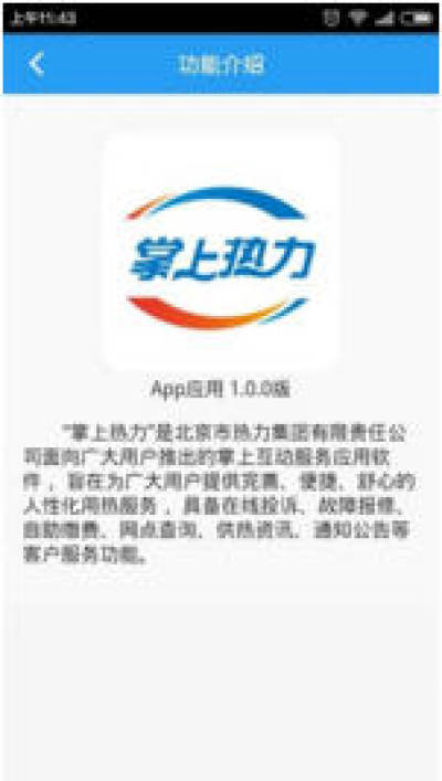 掌上热力是北京市热力集团有限责任公司面向广大居民热用户推出的掌上互动服务应用软件,旨在为热用户提供完善、便捷、舒心的人性化用热服务。
