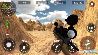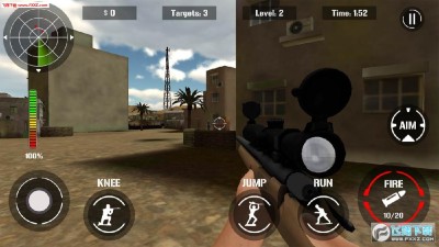 3D狙击射击游戏,非站桩,可以在地图里自由移动。不过要注意隐蔽,因为敌人远远的就能看到你。玩法简单除暴,干掉全部敌人自己还活着就行。画面和操控都还可以。