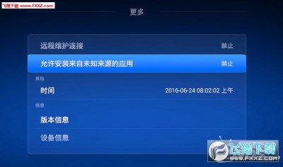 1.华为悦盒默认是禁止安装未知来源应用,所以我们需先对盒子进行设置,如未设置,后续无法安装软件。进入“设置”---更多---找到“允许安装来自未知来源的应用”,默认是禁止状态,设置允许后才能进行后续步骤。
