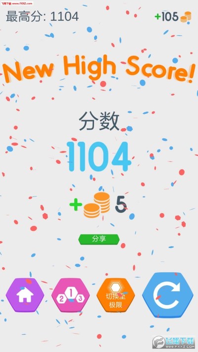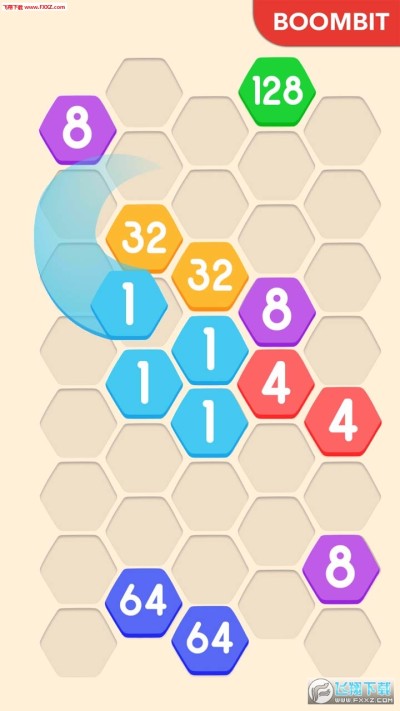这是一款非常好玩的“方块移动+数字融合”游戏,玩家把六边形方块进行移动,让4个相同数字的方块靠在一起即可融合出他们之和,产生新数字。游戏其实很容易上手,但如何移动需要考验策略。最有趣的是游戏提供分数排名,你可以查看你在全球或者全国的排名情况。