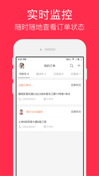 发单后可随时随地的监控订单状态和位置,安全放心。