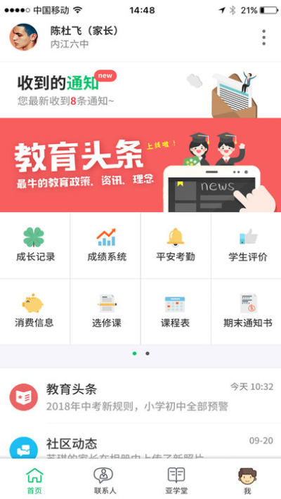 提供一个基于 互联网的移动应用的互动教育平台。通过结合移动互联网技术、云计算、考勤信息化技术为学校教育和家庭教育提供通畅的沟通桥梁。家校互动用户可以方便地获取个性化的教学信息、享受丰富的网上教育资源,为教育行业的信息化和教育方法提供了强有力的参考。