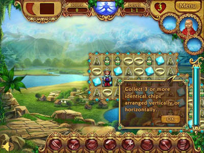 按START开始游戏,在剧情过后即可开始游戏。操作很简单,和一般消除游戏规则一样,移动三个或以上同样的小标志,组成相连的直线就可进行消除。