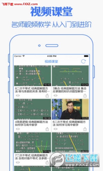 对于不少朋友来说,高中数学都是一门非常难的课程,这款高中数学一点通就是一个专门用来帮助大家提高数学成绩的手机应用,这里为大家归纳整理了所有的高中数学知识要点,还有不少的视频教学资源供大家免费使用,感兴趣的朋友可以来看看哟!