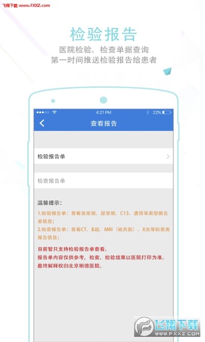 检验报告:及时快速的推送检验报告给患者