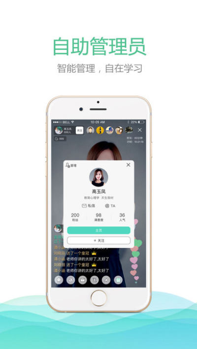2.设置管理员:直播过程中如果老师设置学生为管理员,则学生可开启弹幕、禁言&取消禁言、举报等功能,共同创造清新文明的直播间;
