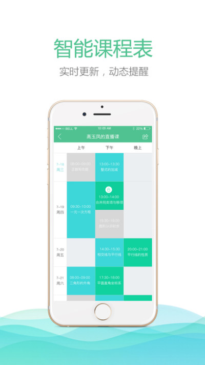 5.课程表:显示家长已关注老师最近15天的课程安排,直播信息智能提醒,不错过老师的每一节课;
