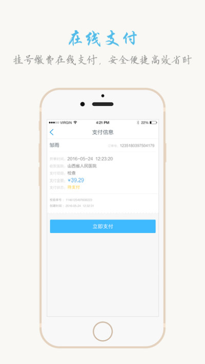 山西挂号是山西省卫生和计划生育委员会主导的山西省预约诊疗服务平台官方APP。山西挂号(用户版)旨在为大众提供全省统一的便捷就医服务。