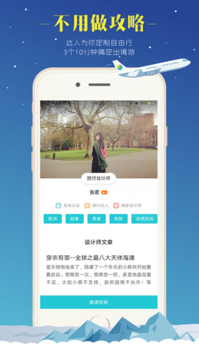 旅游出行必备应用,你可以在指南猫上找到最合适的旅行设计师帮你提供行程定制、旅行预订服务。