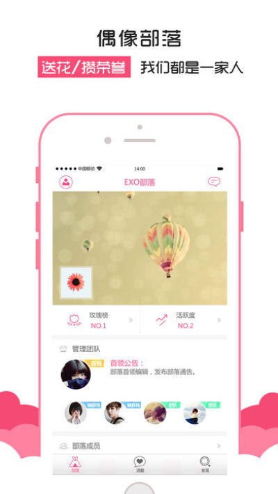 Fans部落是为追星族打造的手机娱乐,互动社区,为偶像献花和家人一起来建设偶像部落。