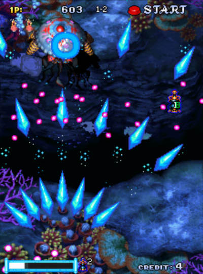 画面相当华丽,后期弹幕的密集程度很高,而自机的中弹判定要比CAVE的作品大得多,所以很多时候想要在弹幕中穿梭是很危险的。比较令人遗憾的就是,本作竟然成为了彩京的最后一款2D射击游戏